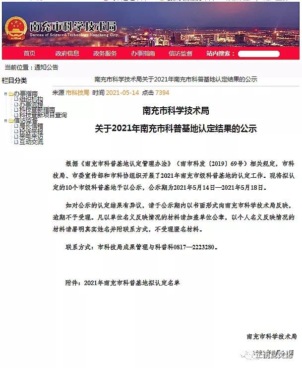 南部縣寺外桃源旅游景區申報的“南充市科普基地”順利通過南充市科學技術局認定!