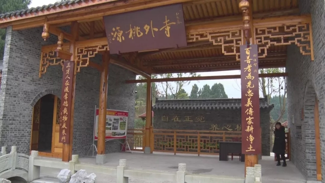 寺外桃源景區位于的伏虎鎮正覺寺村,先后榮獲首批“四川省先進文化示范培育村”“四川省幸福美麗新村”“首批省級四好村”“中國特色村莊”等稱號,因村里有座古寺廟“正覺寺”,故而景區取名為“寺外桃源”。