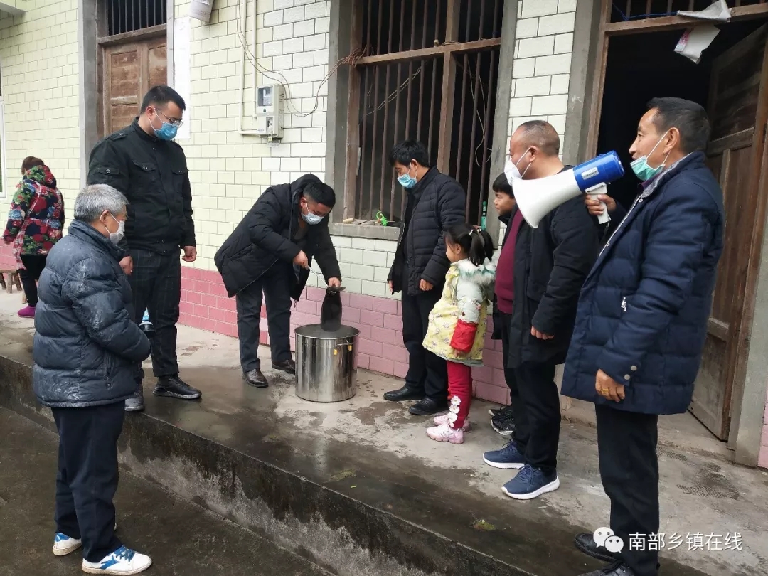 ?2020年1月31日上午,南部縣正南昆慈善會會長王新戰(zhàn)斗在疫情防控第一線,并和兩委干部下村為村民施藥。