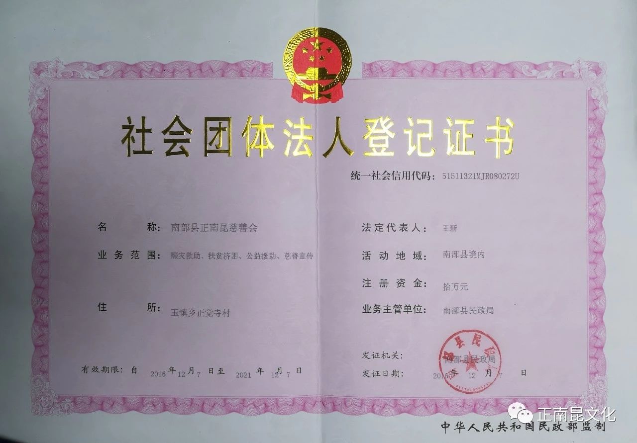 ? ? ? ? 南部縣正南昆慈善會于2016年12月依法登記注冊成功, 南部縣正南昆慈善會是由縣內外熱心慈善事業的社會各界人士、企業單位、慈善機構和有關團體自愿參加的全縣性民間社會組織。系社會團體法人,其合法權益受國家法律保護。