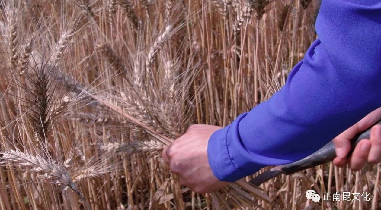 早餐過后,農民們就背上背簍拿上鐮刀走向幾里外的麥地,一路說說笑笑,歡歡喜喜到了麥地開始一天工作。